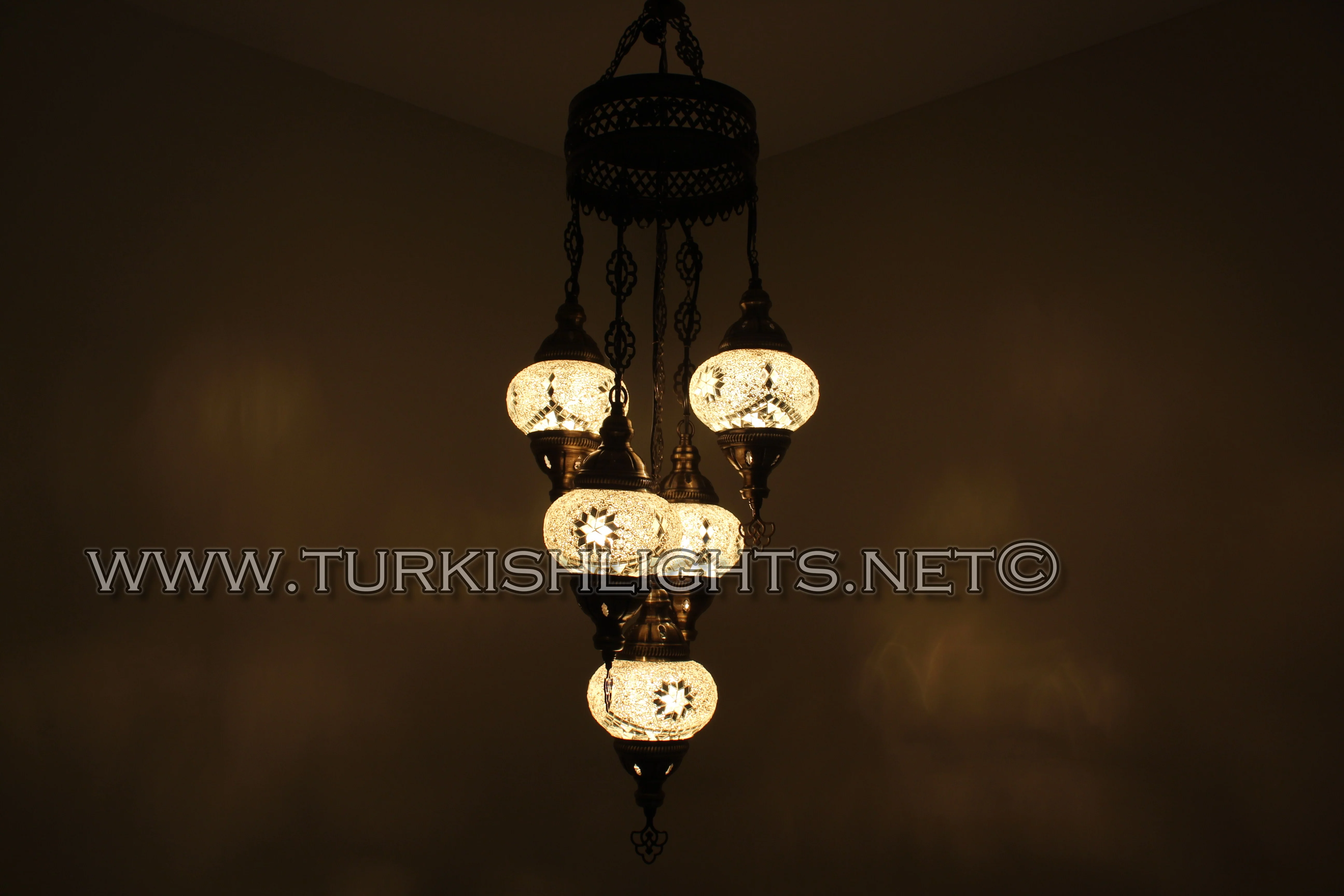 5 Ball Turkish Sultan Mosaic Chandelier with Medium Globes