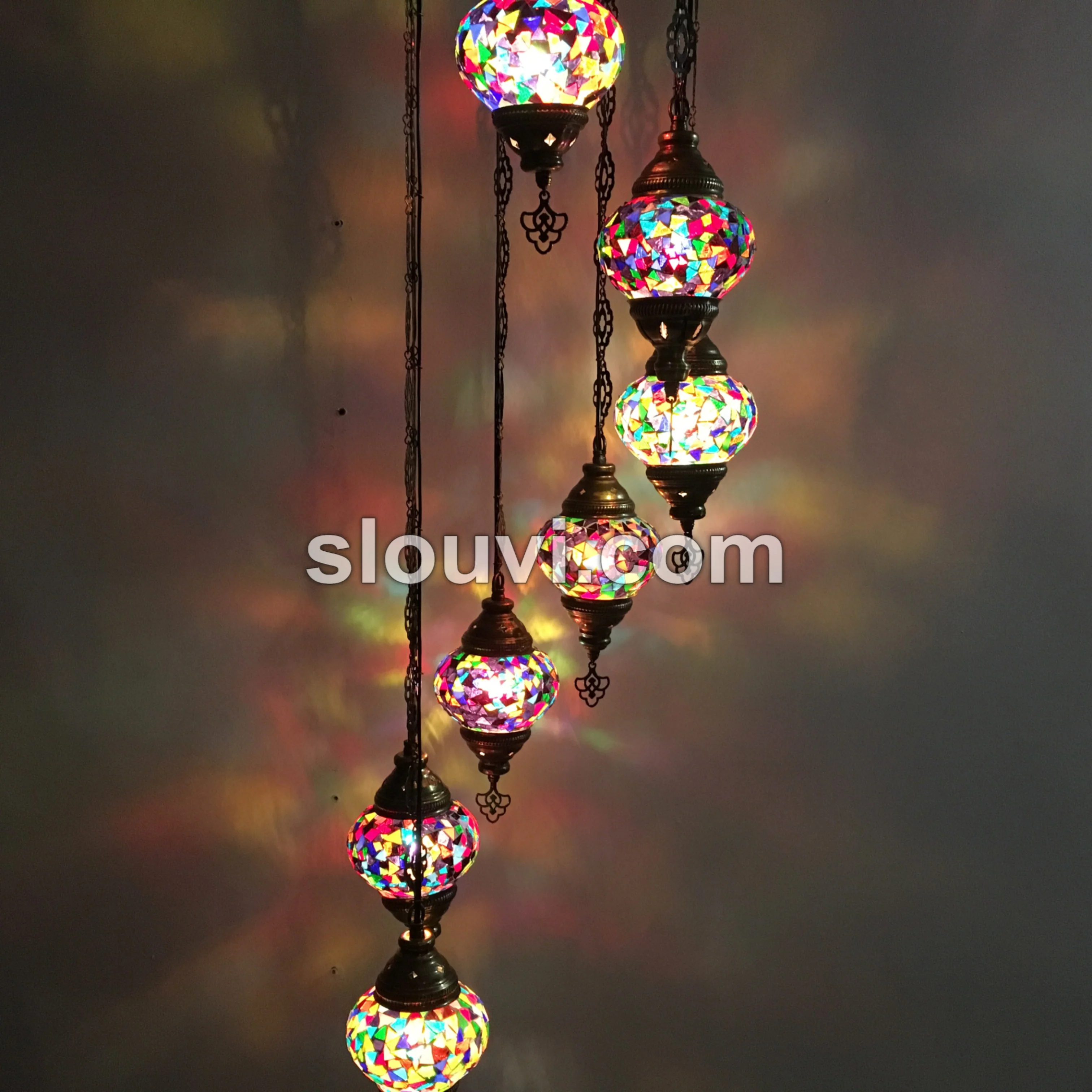 TURKISH MOSAIC LAMP, Â CHANDELIER IN 7 GLOBES