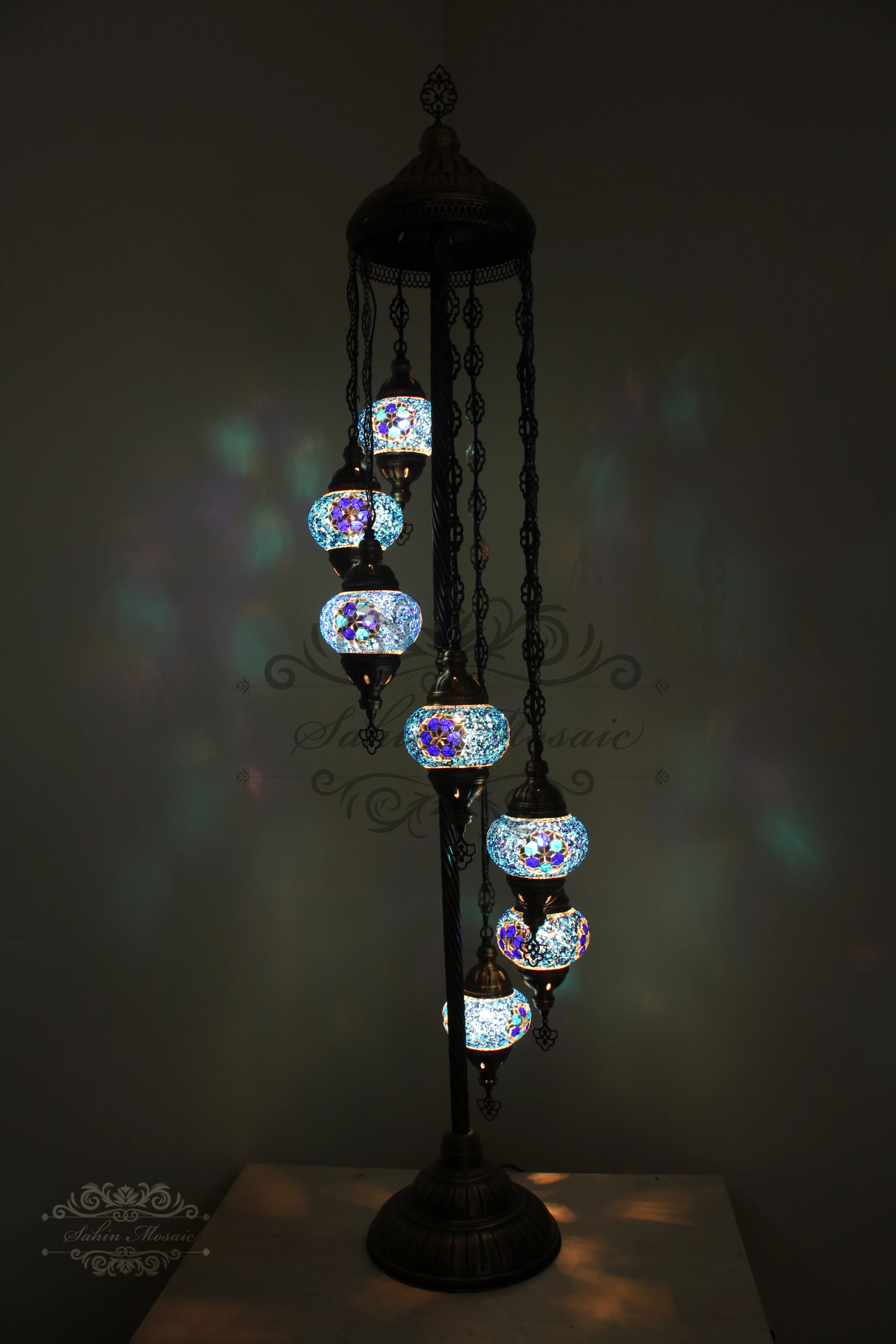 7 Globe Turkish Mosaic Floor Lamp Medium Globes ID: 7FM-1