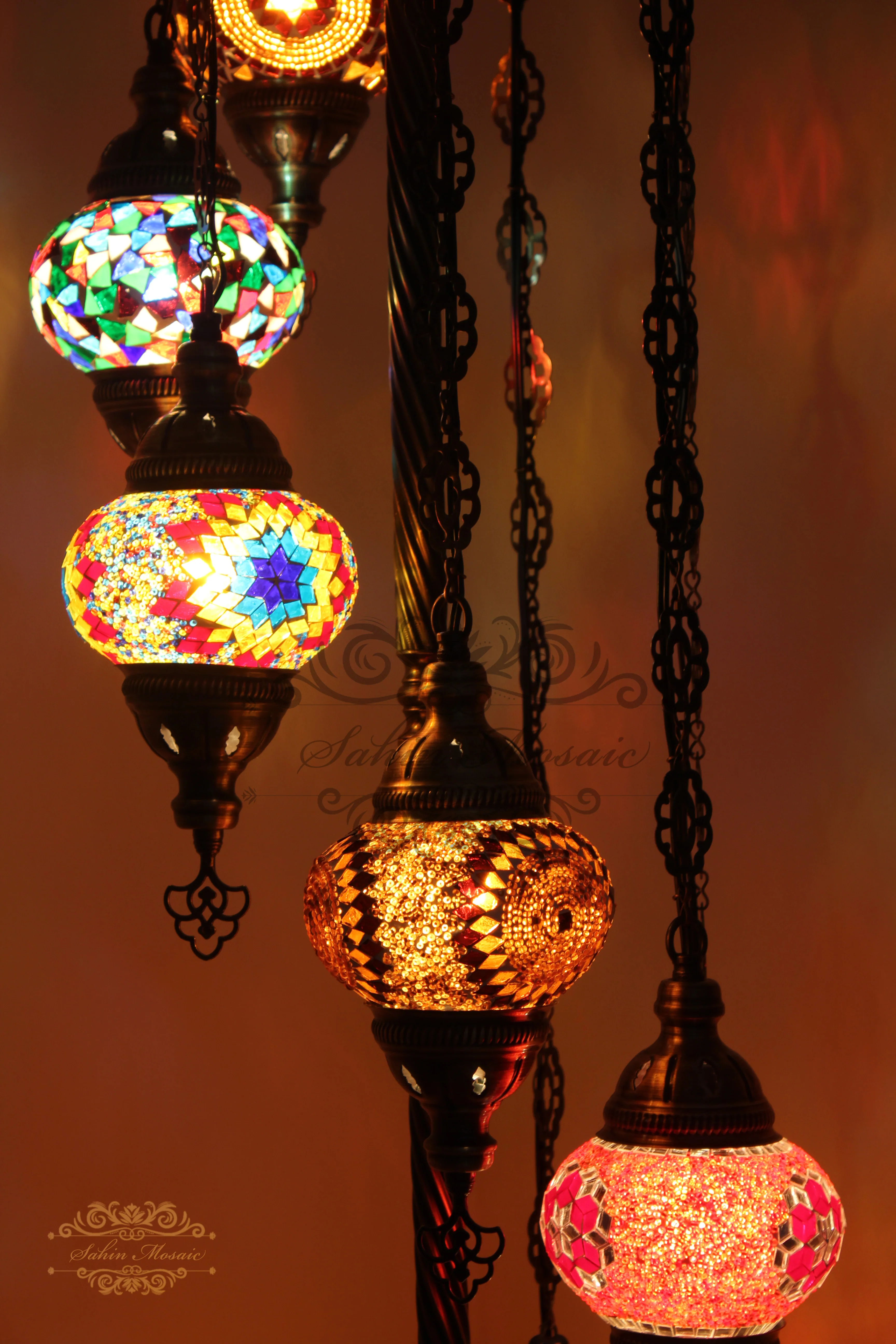 Premium Turkish Mosaic Floor Lamp - Elevate your interior design with this spectacular 7-globe floor lamp featuring medium handcrafted mosaic globes. Each globe is meticulously crafted using traditional Turkish artisan techniques, creating a perfect blend of art and functionality.