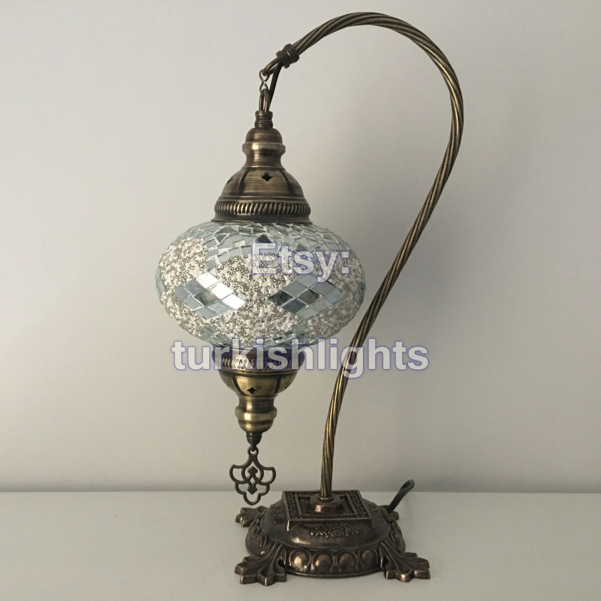 Turkish Mosaic Swan Neck Table Lamp Large Globe ID: BL-7