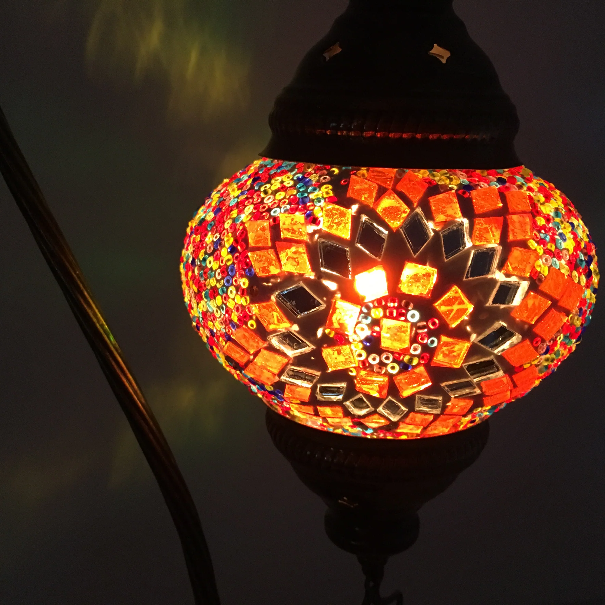 Turkish Mosaic Swan Neck Table Lamp - Sophisticated swan neck table lamp with medium mosaic globe. Handcrafted by skilled Turkish artisans, this lamp features colorful glass mosaics that produce enchanting light effects.