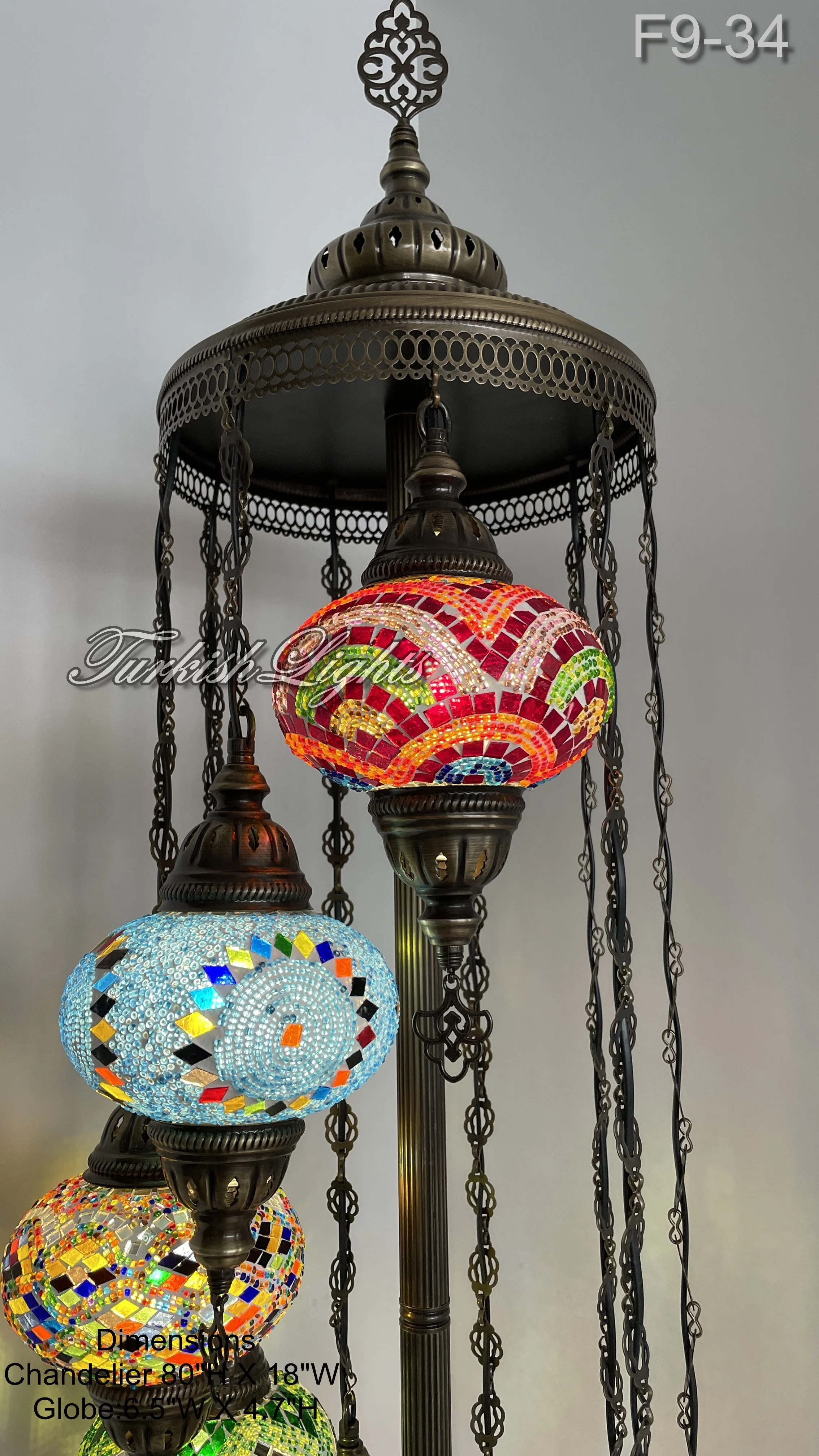 9 Globe Turkish Mosaic Floor Lamp Large Globes ID: FL9-34