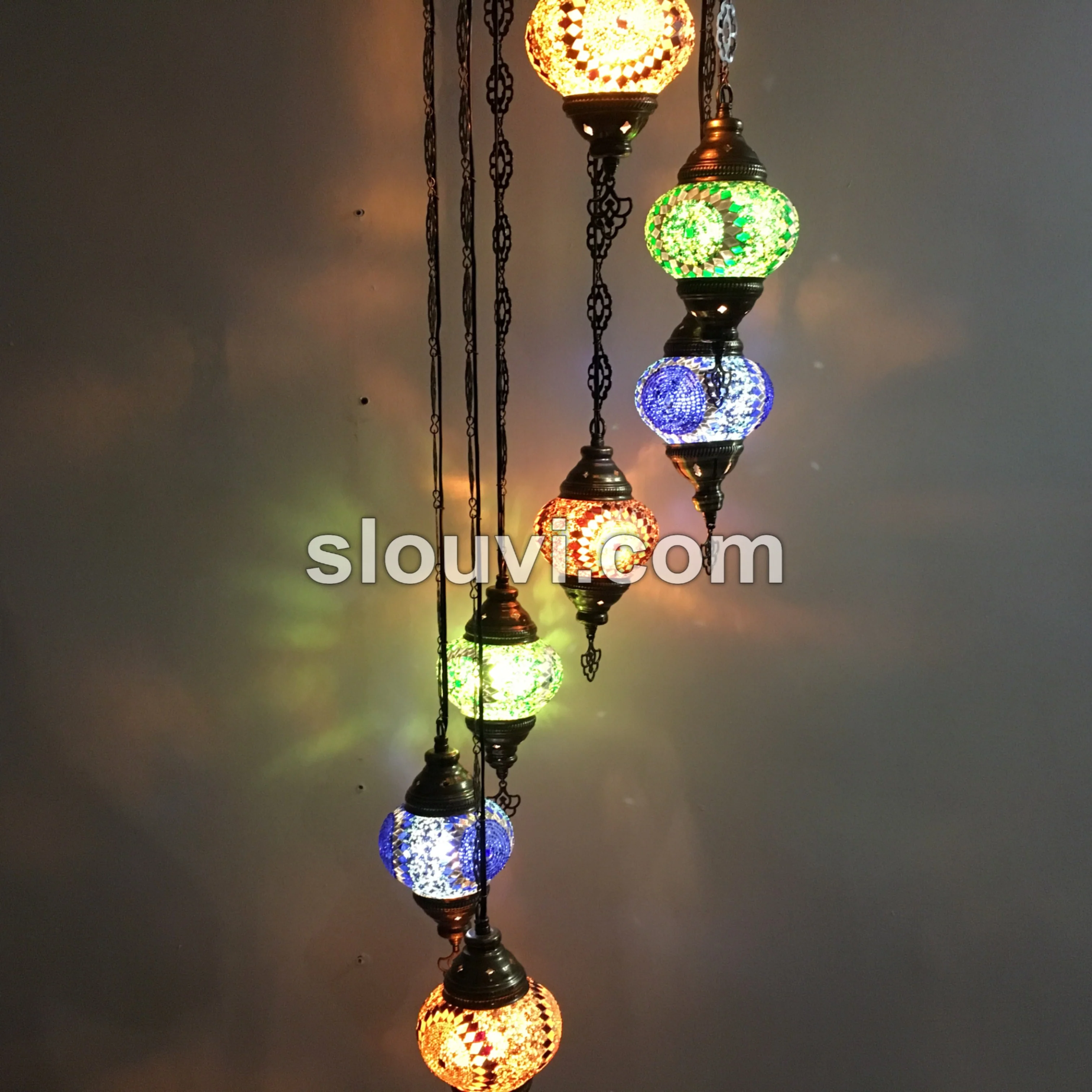 Handcrafted Turkish Mosaic Chandelier - 7 Ball Water Drop Design