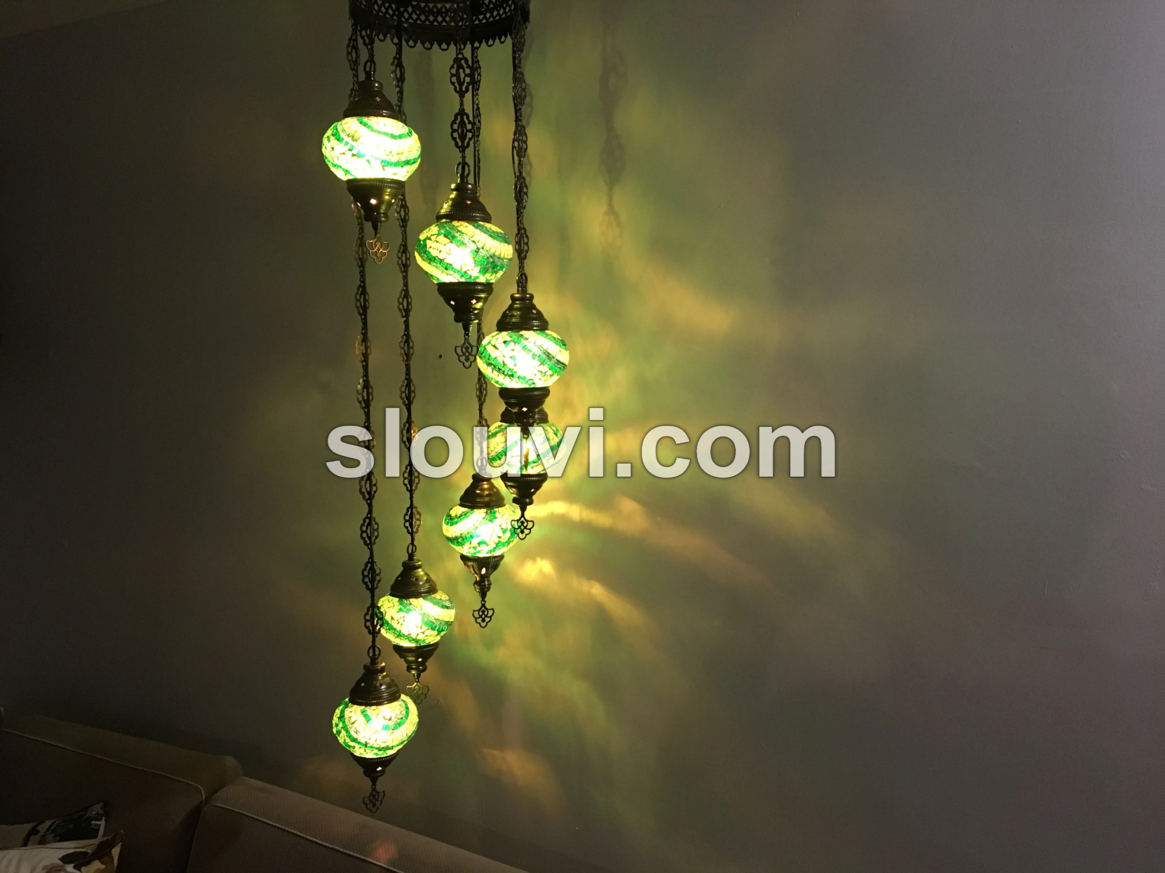 Handcrafted Turkish Mosaic Chandelier - 7 Ball Water Drop Design