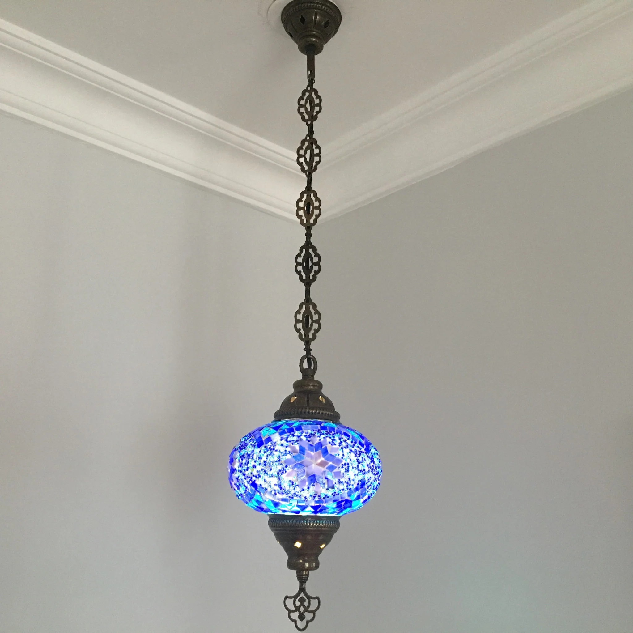 Turkish Handmade Mosaic Hanging Pendant - Large Globe - Elegant hanging pendant featuring a large handcrafted mosaic globe. Each globe is meticulously crafted using traditional Turkish mosaic techniques with vibrant colorful glass.