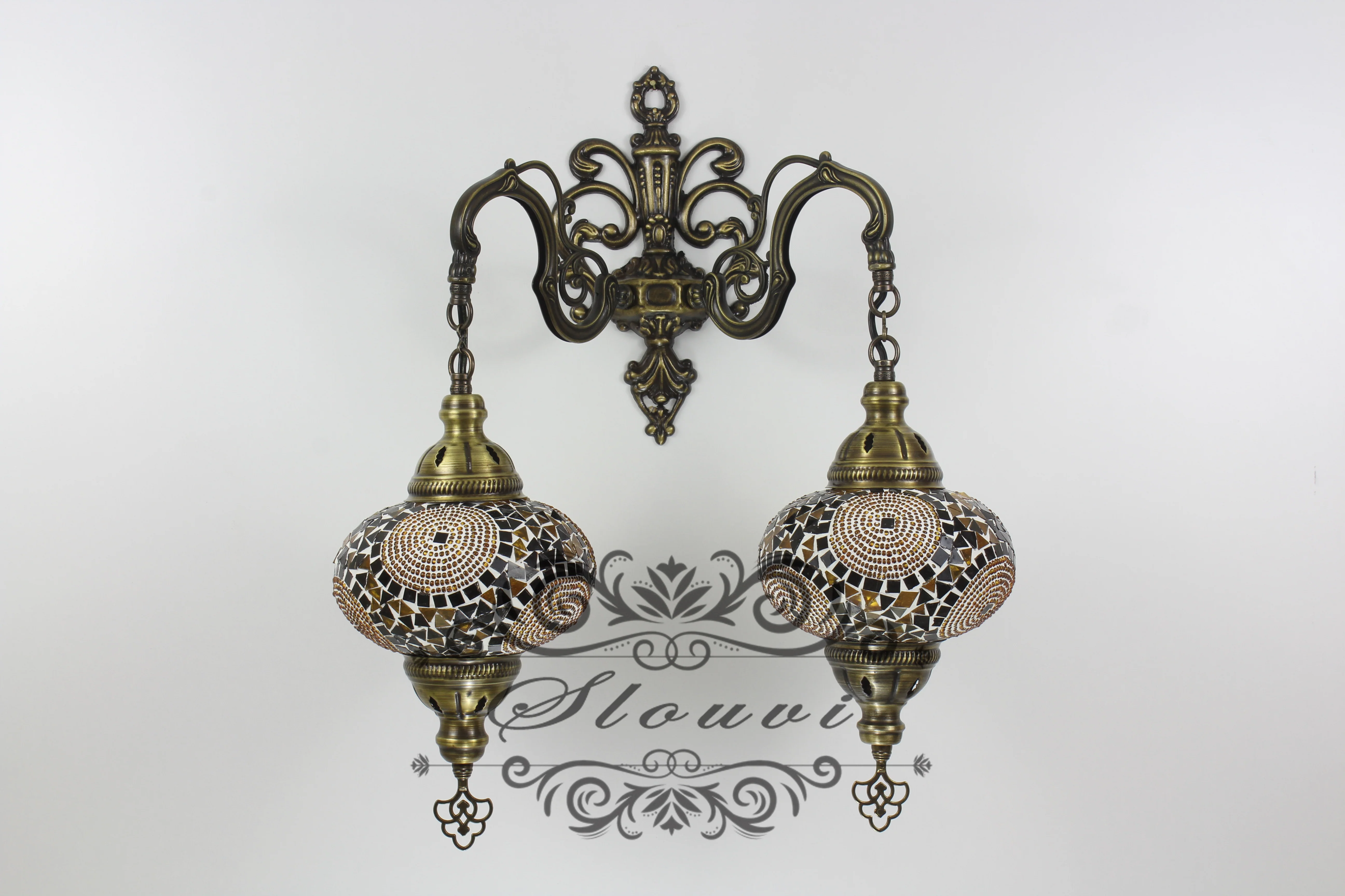 Turkish Mosaic Double Wall Sconce, With Large Globes—