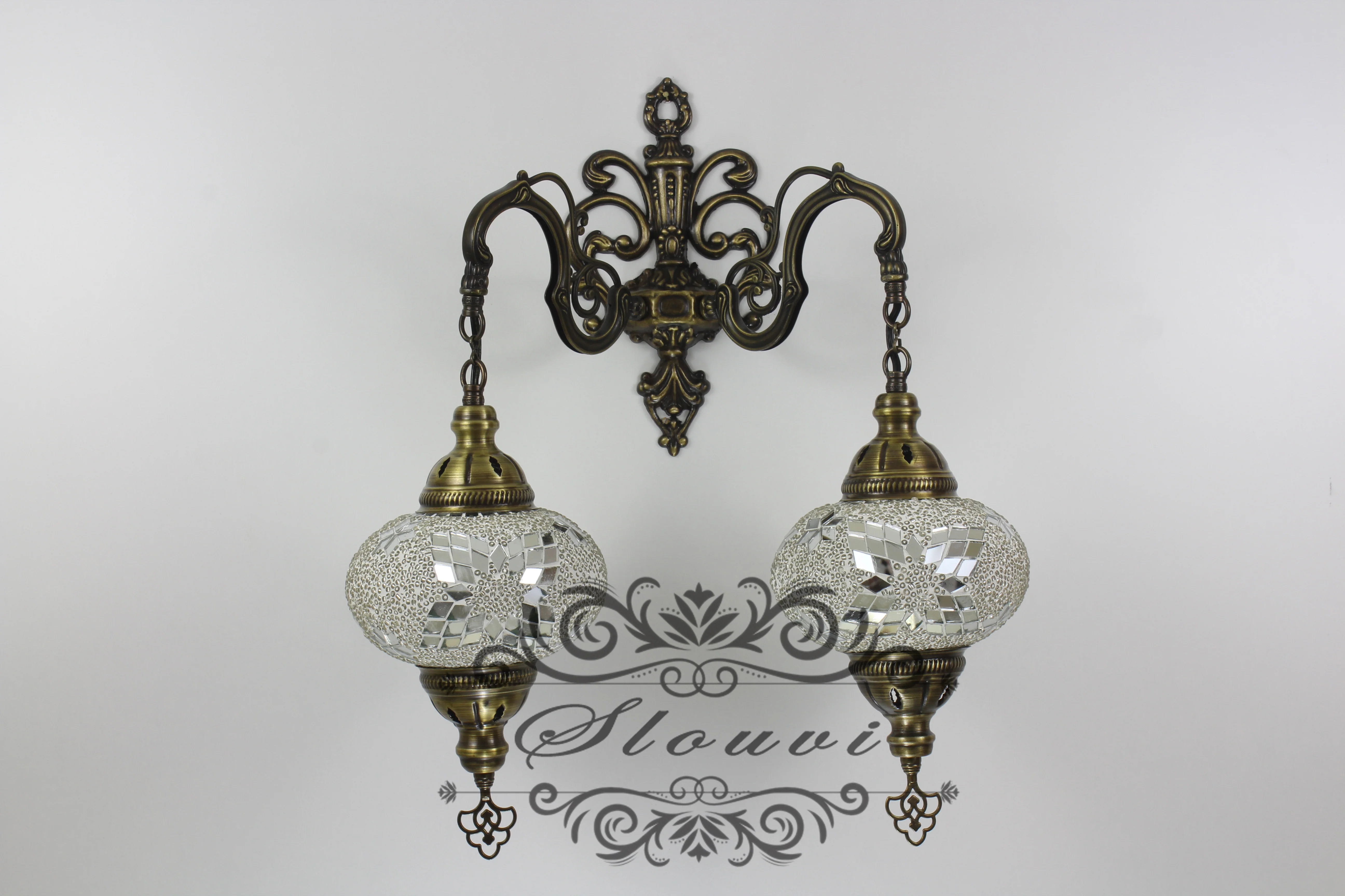 Turkish Mosaic Double Wall Sconce Large Globe Down ID: WDLD09